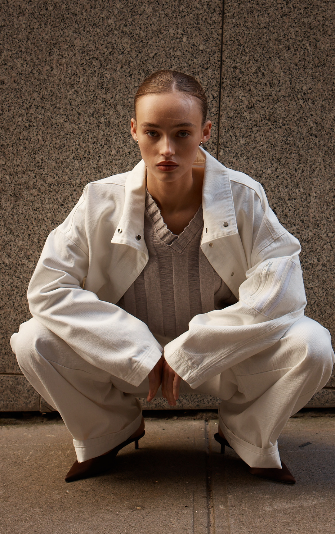 The Remy Jacket reimagines a denim essential through dref’s refined, modern lens. Cut in a boxy, structured silhouette, it balances clean lines with effortless ease. Crafted from premium white 100% cotton denim, it features classic silver hardware and functional pockets, finished with a crisp, contemporary wash. Designed for versatile layering, Remy moves seamlessly between casual and elevated dressing, making it a year-round wardrobe staple.
