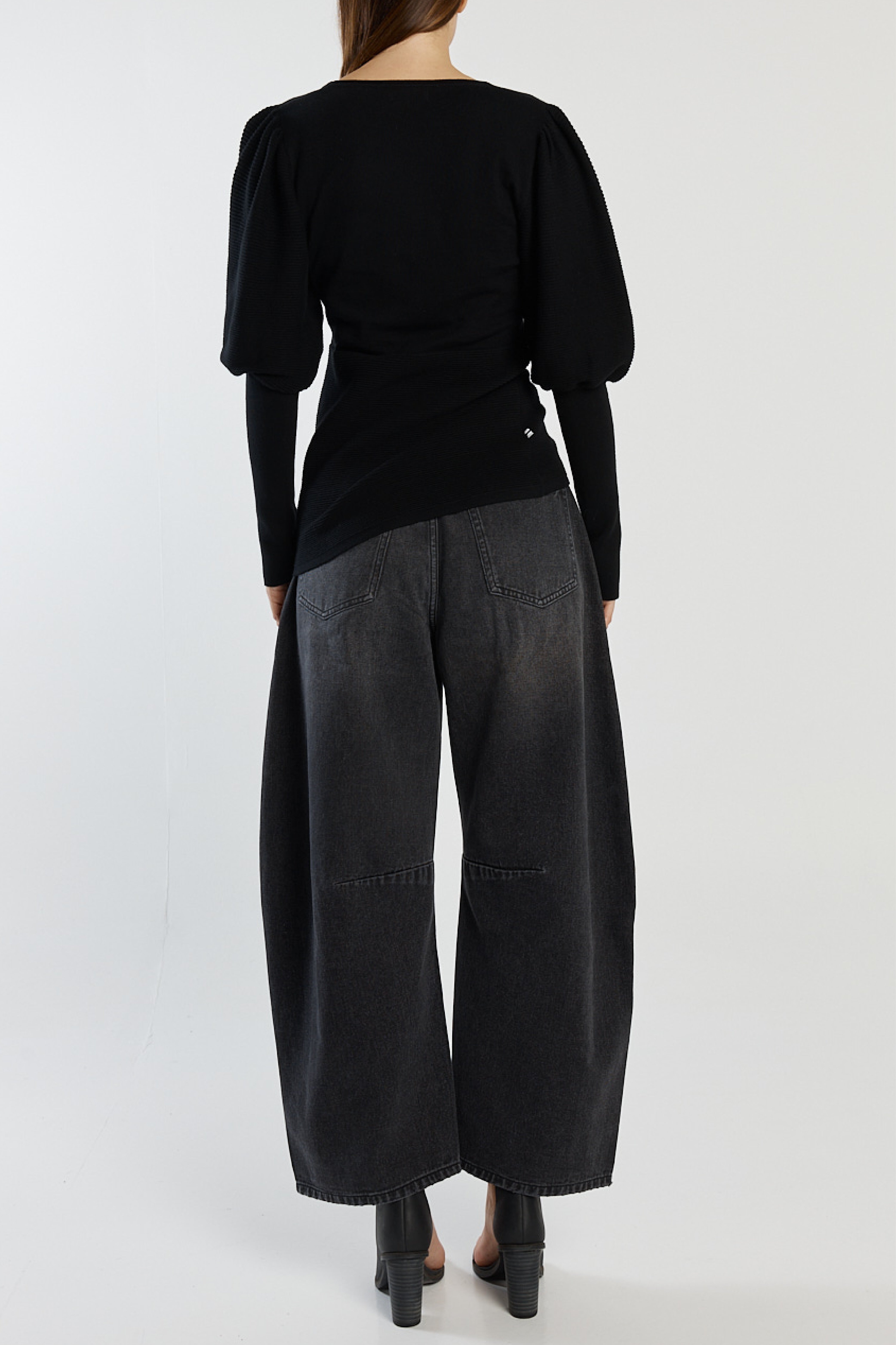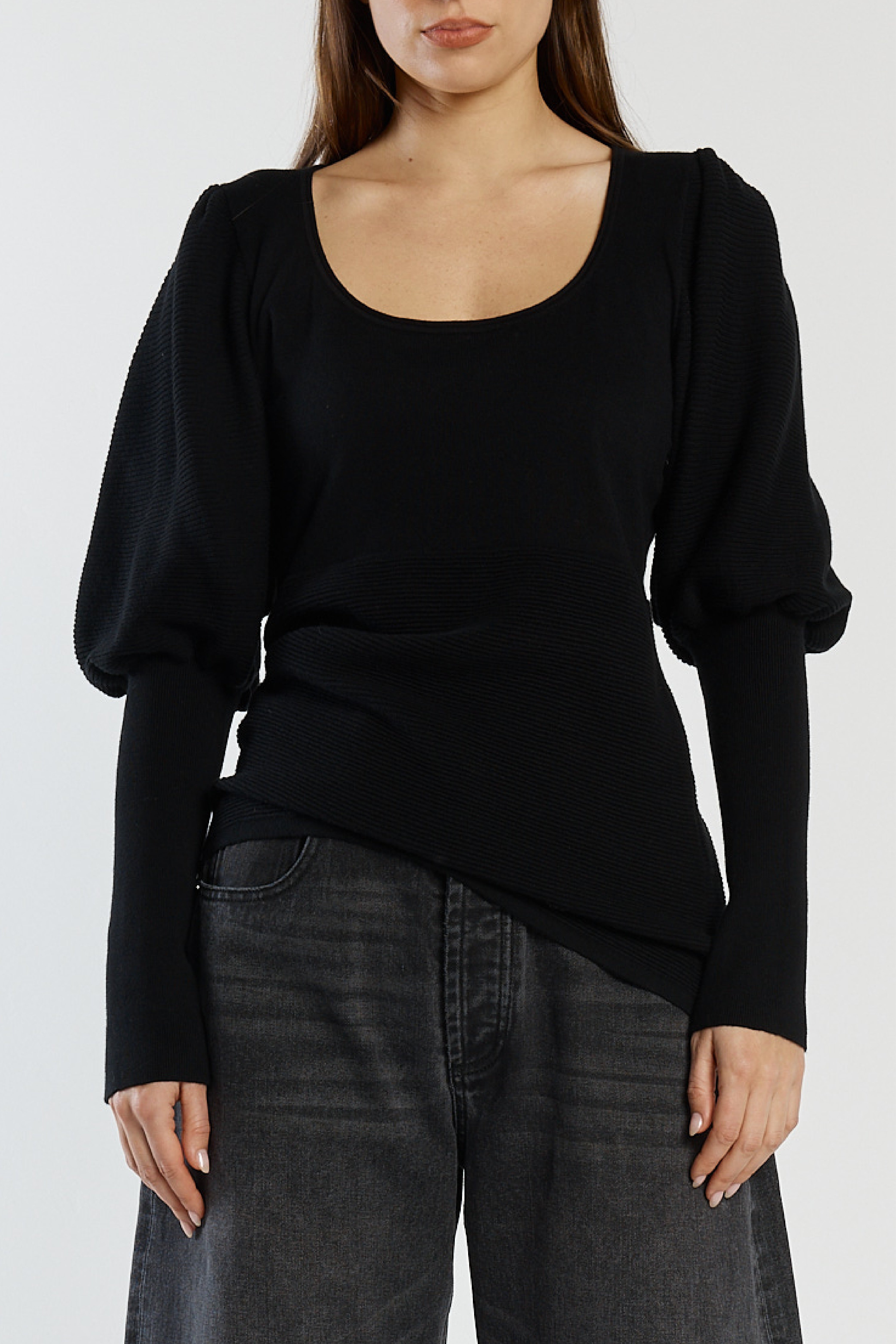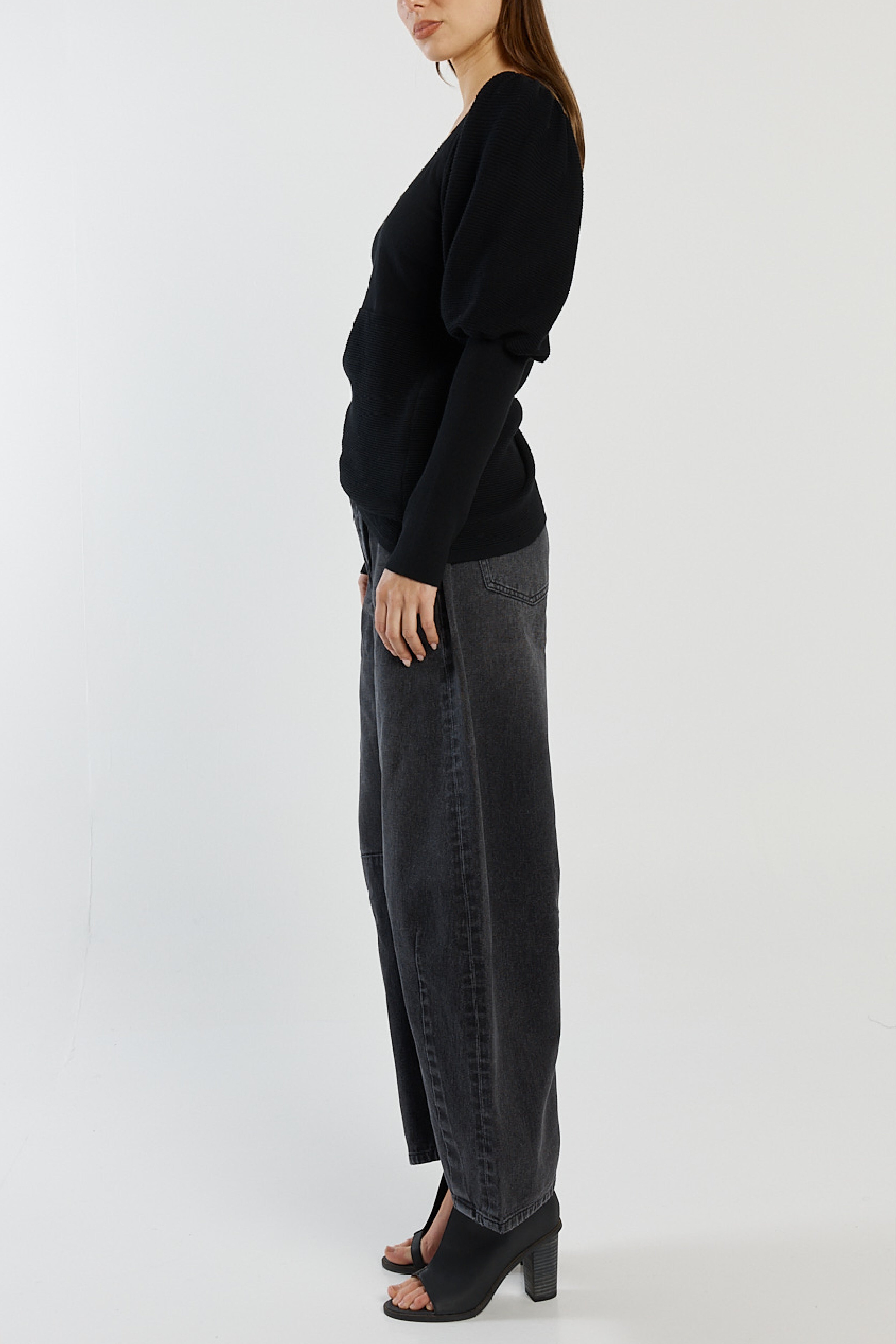 The Capri Top is designed for a slim fit with ribbing at the waist to define the silhouette. Balloon sleeves add volume while maintaining balance. Take your regular size for a flattering, close-to-body look.
