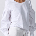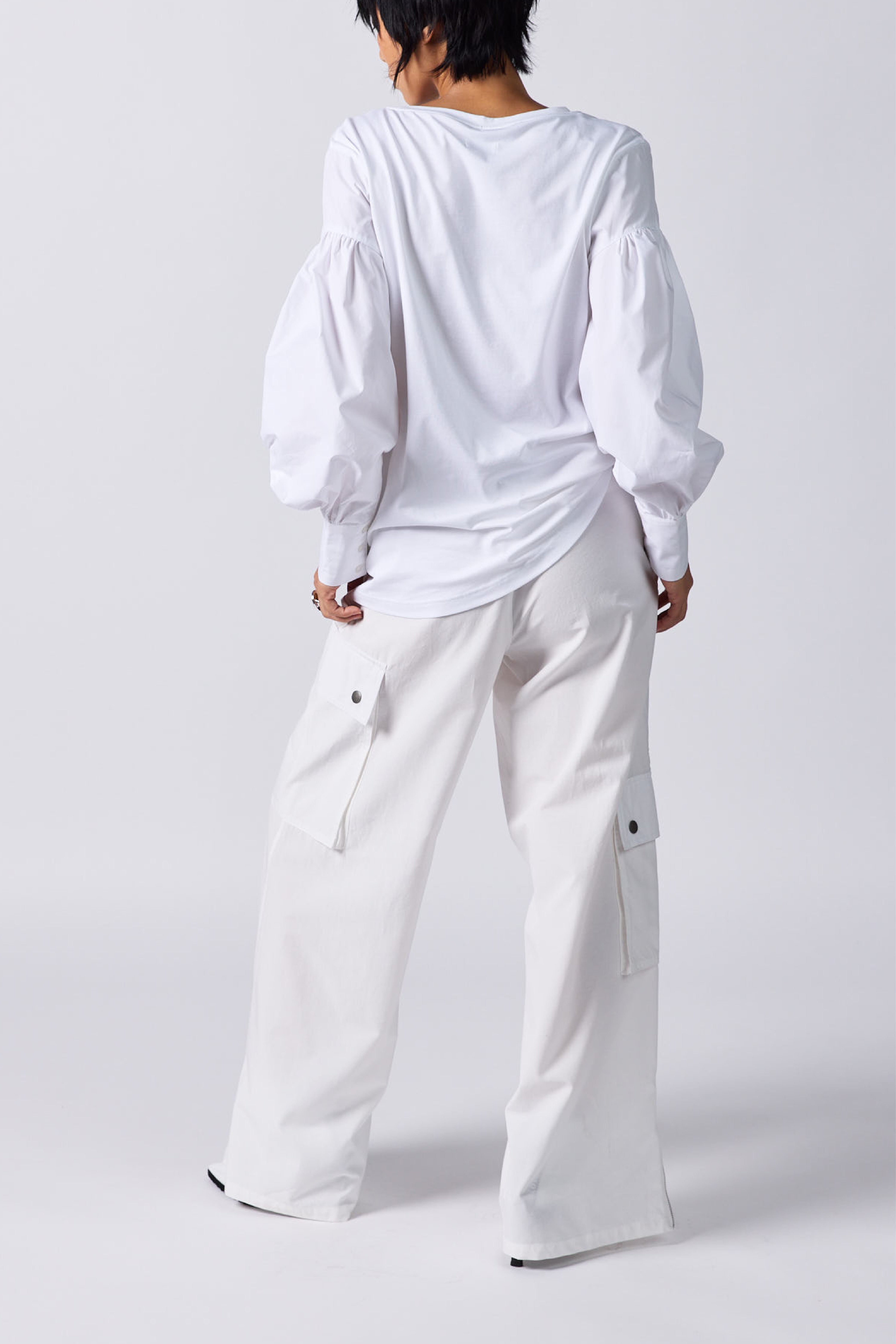 The Sherry Top is this season’s wardrobe hero, combining trending balloon sleeves with a luxe leisure silhouette. Crafted from a mid-weight cotton/spandex blend, it offers a relaxed fit that is elevated by contrasting cuffed sleeves for a subtle statement. Casual yet refined, this versatile top is perfect for weekend styling or dressing up for effortless street-chic looks.