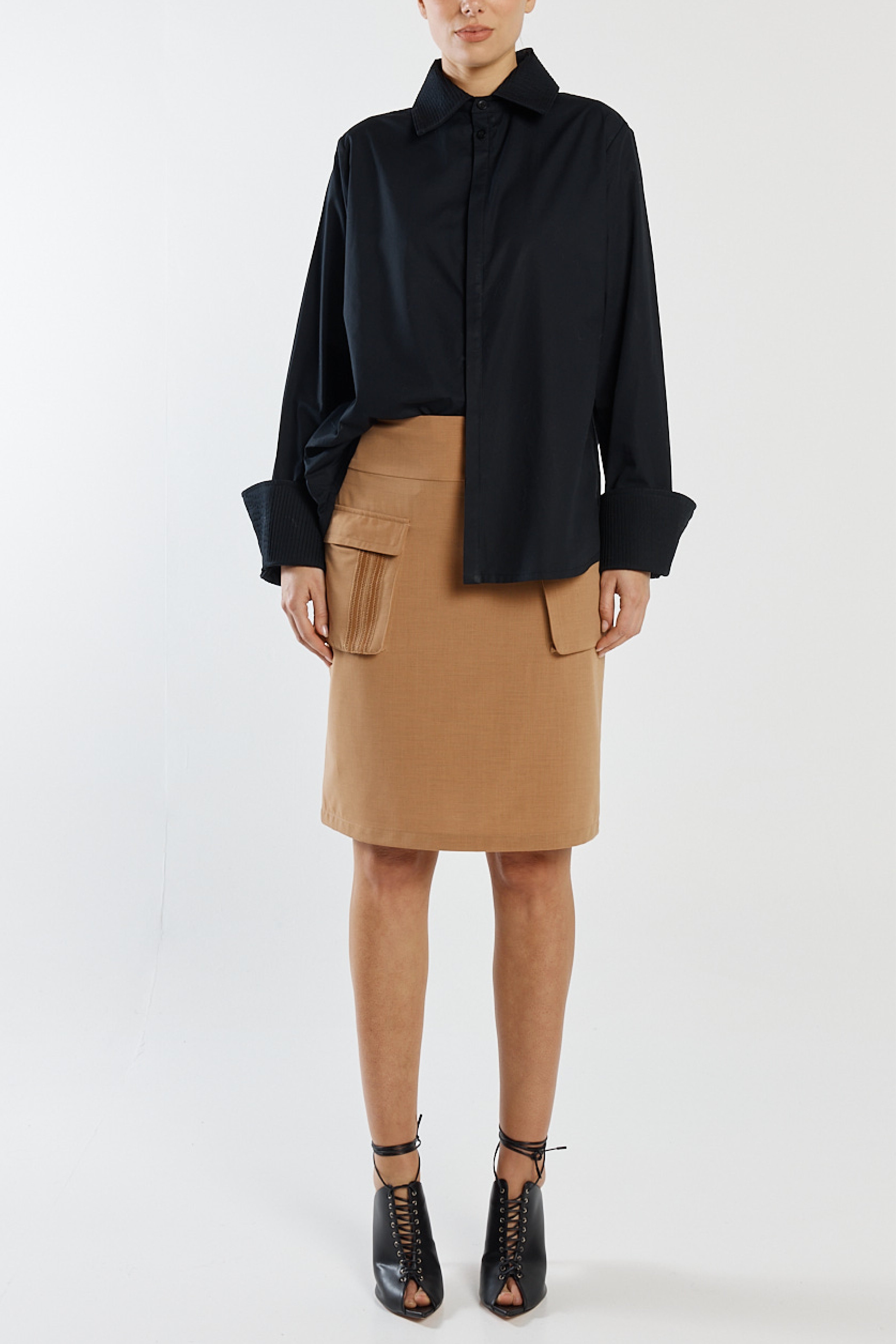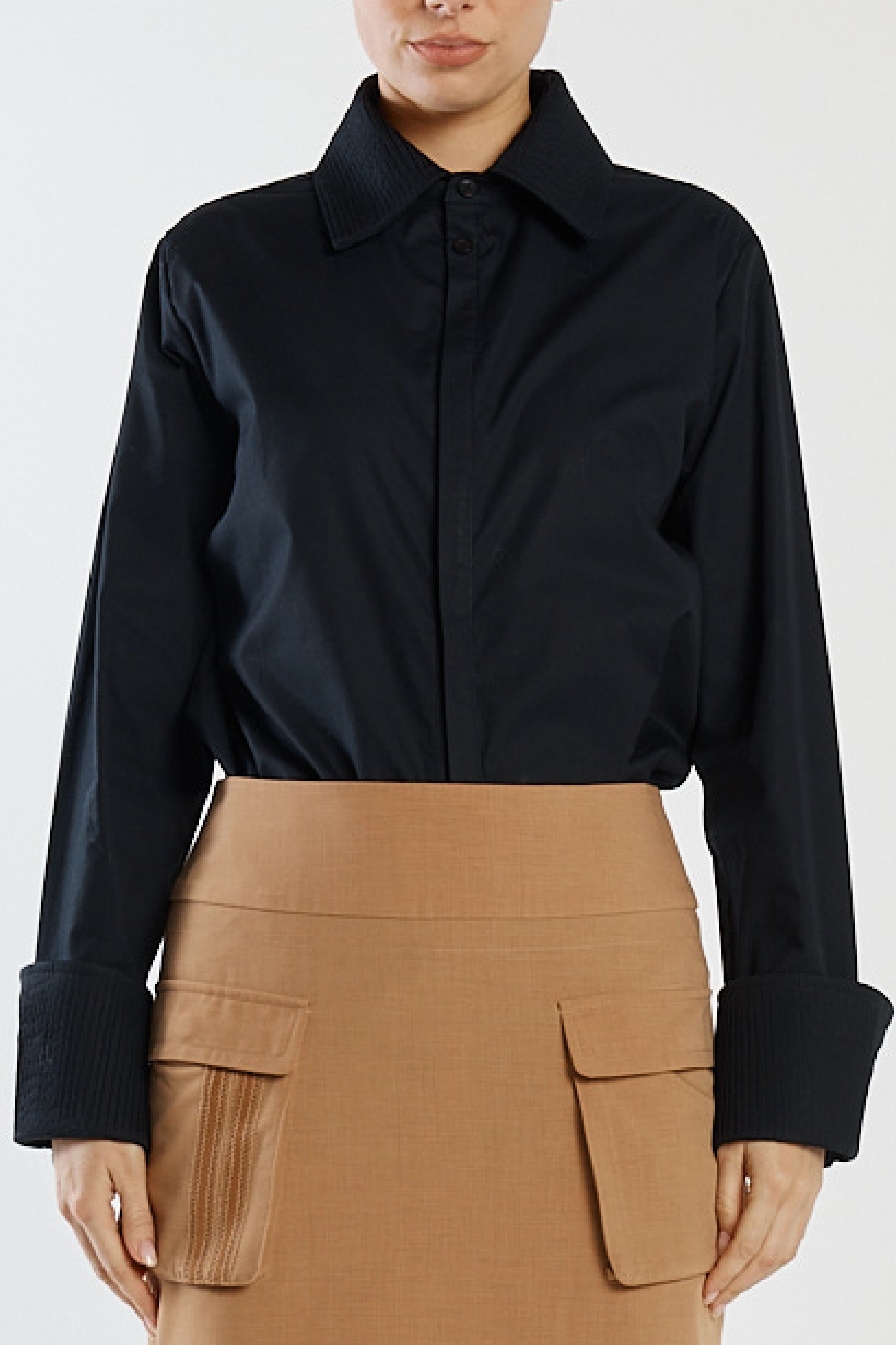 Ontario Shirt -Pintuck Cuff Cotton Shirt Black