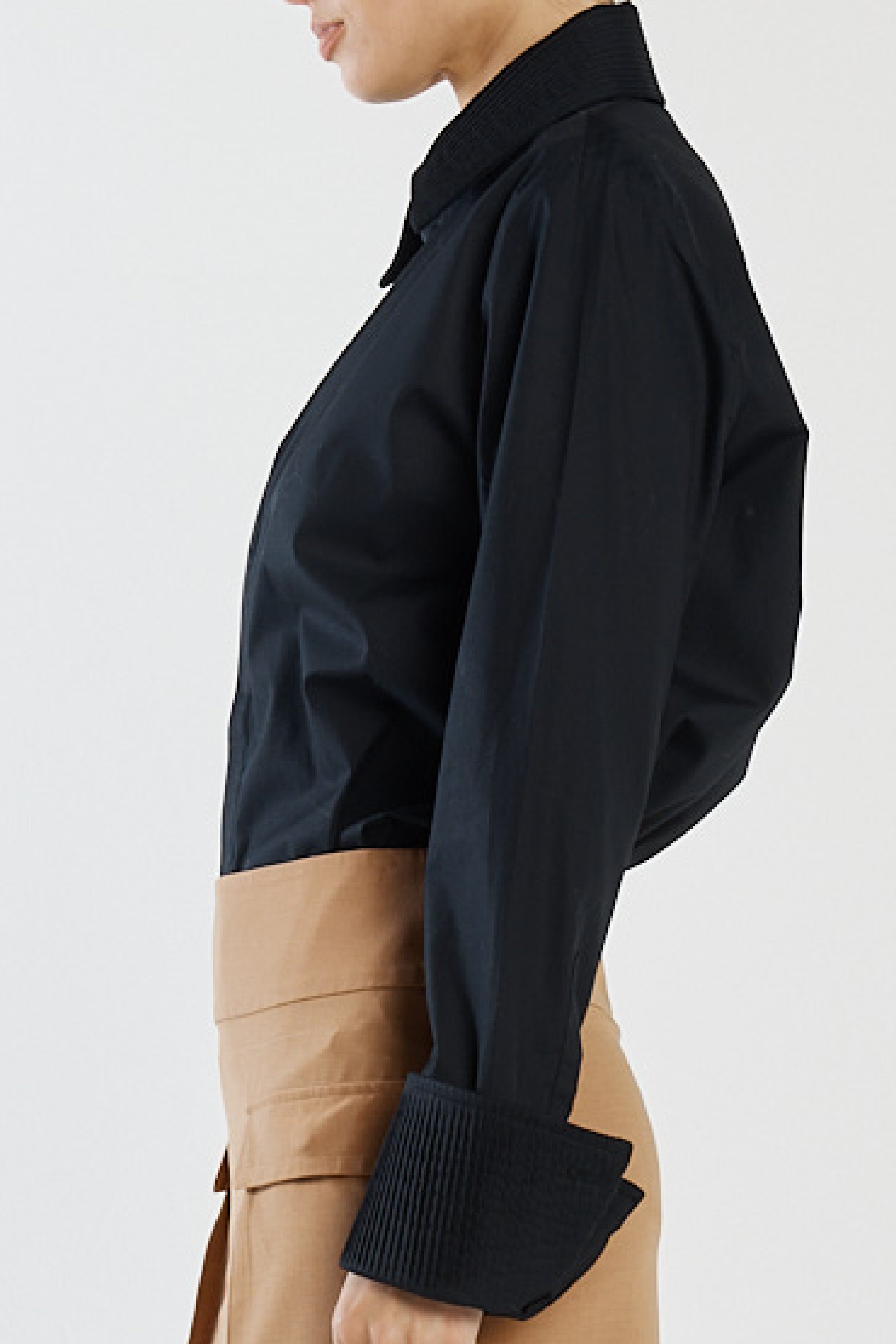 Classic shirt silhouette reimagined with pintuck cuff detailing