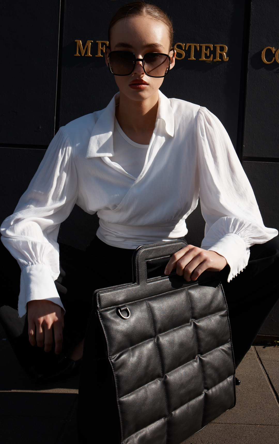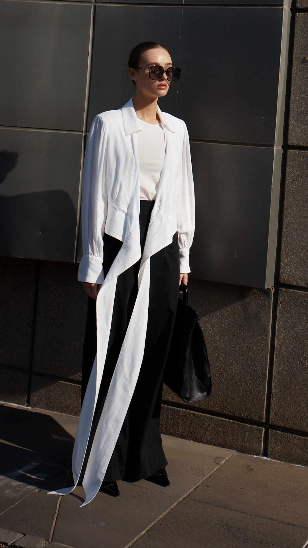 Designed for versatility, the Cosmo Top seamlessly shifts from statement blouse to lightweight jacket. Cut in a tactile ramie blend with an organic texture, it features a refined wrap silhouette with a deep V-neckline, voluminous sleeves, and a cropped hem with wide ties that can be knotted at the front or back. Wear it cinched for definition or open over a tank or slip dress for an effortless layered look. Fully lined with self-covered button cuffs, it’s a piece where modern luxury meets thoughtful design.