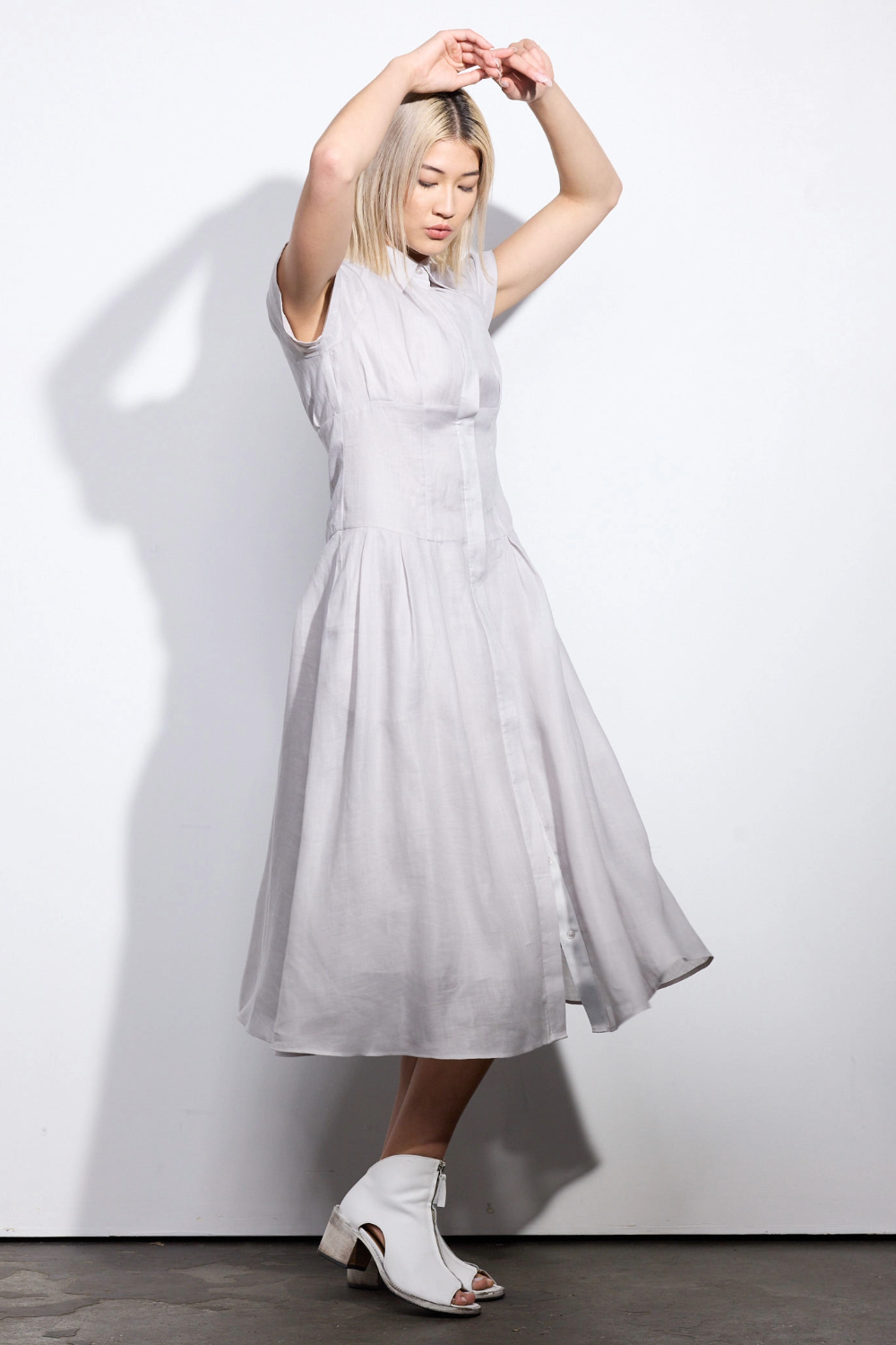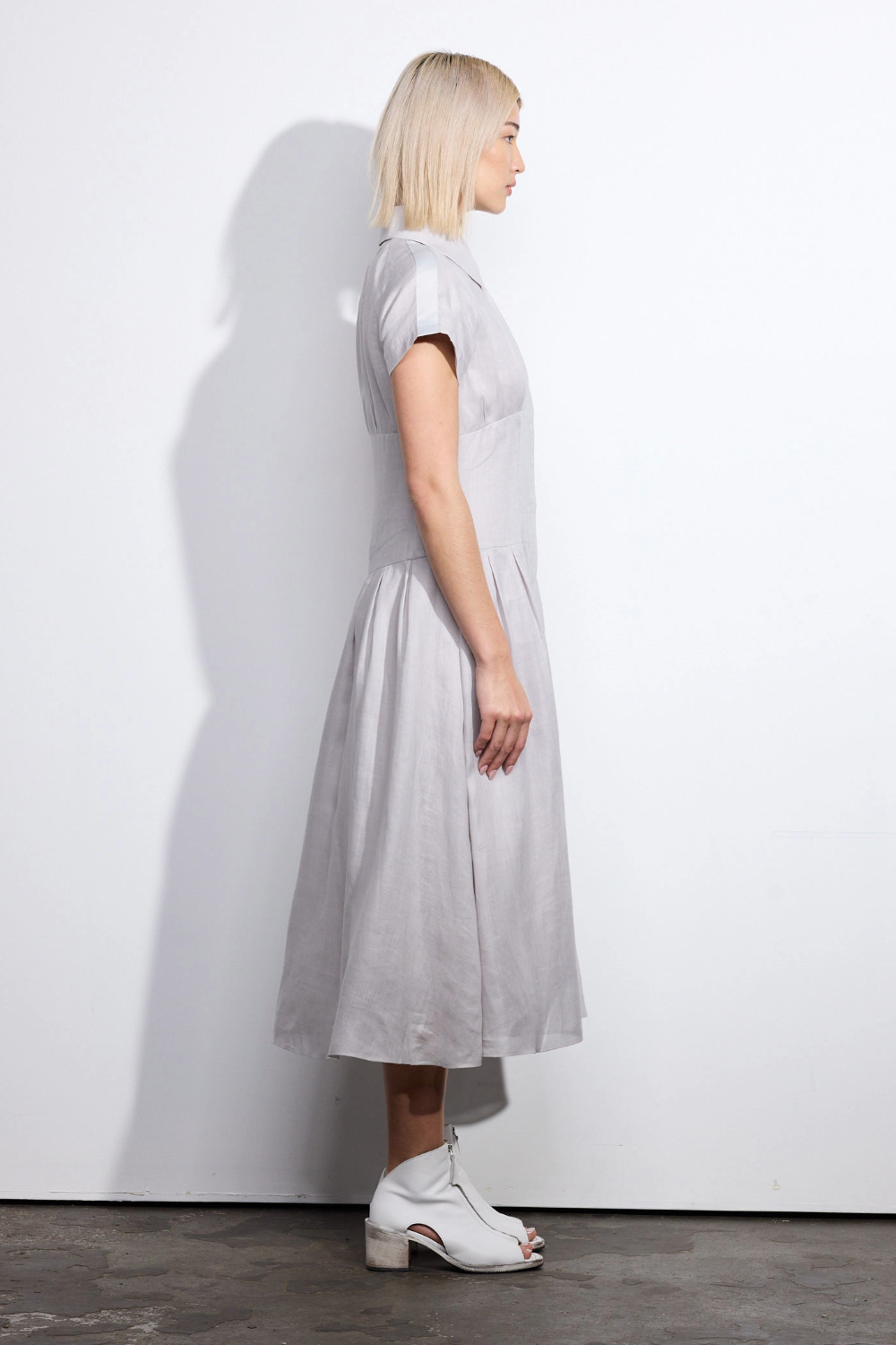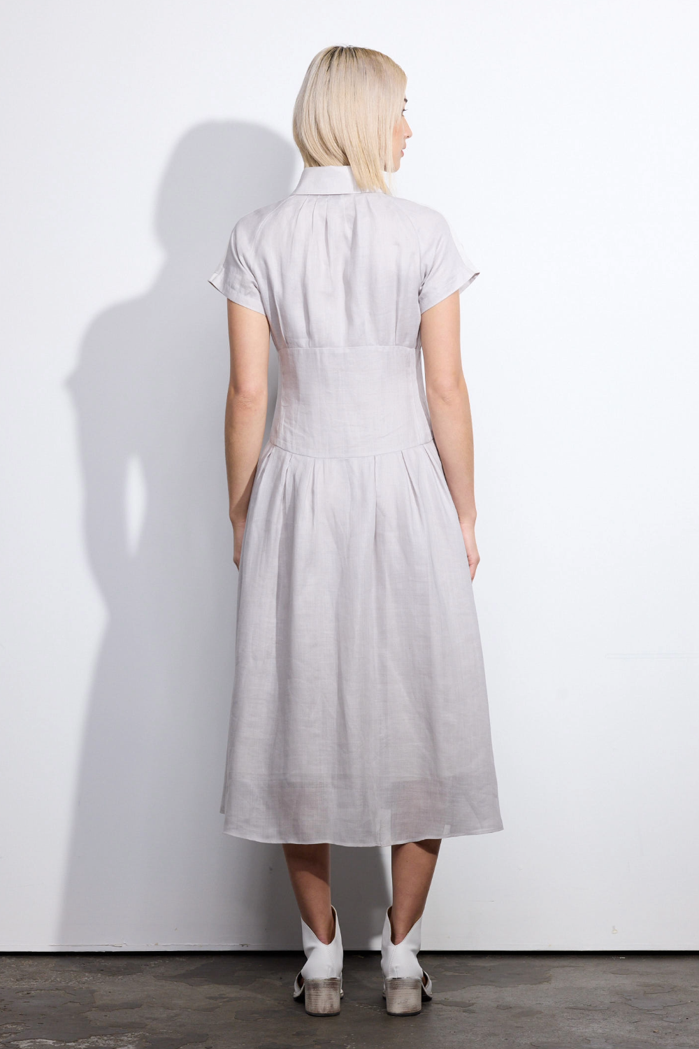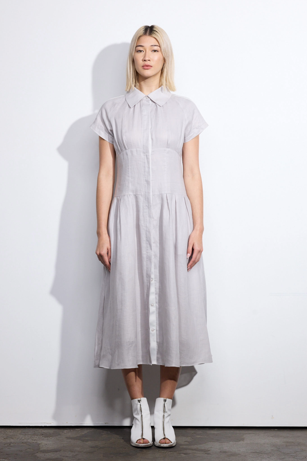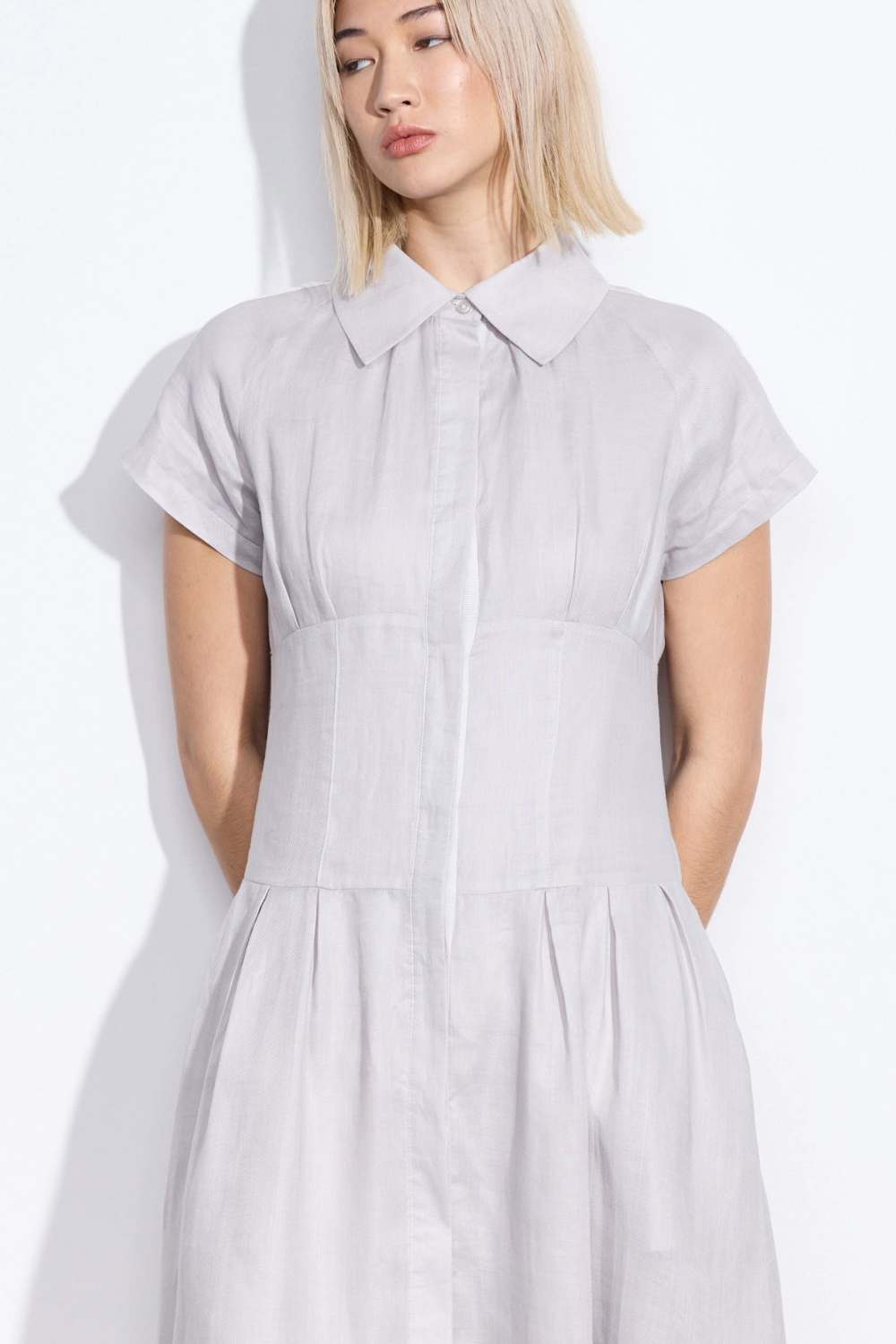 Balancing structure with ease, the Amki Dress is a refined option for warm-weather dressing. Designed to fit slim through the bodice before cinching at the waist, it falls into a softly flowing skirt with subtle pleating for movement and shape. Crafted from an organic textured ramie fabrication, it offers breathable comfort with a naturally elevated hand feel. Fully lined and finished with functional side pockets, the Amki Dress delivers modern luxury with effortless wearability.